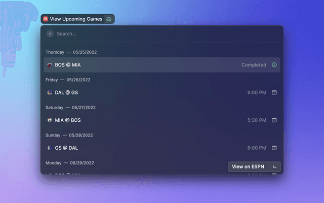 View upcoming NBA games