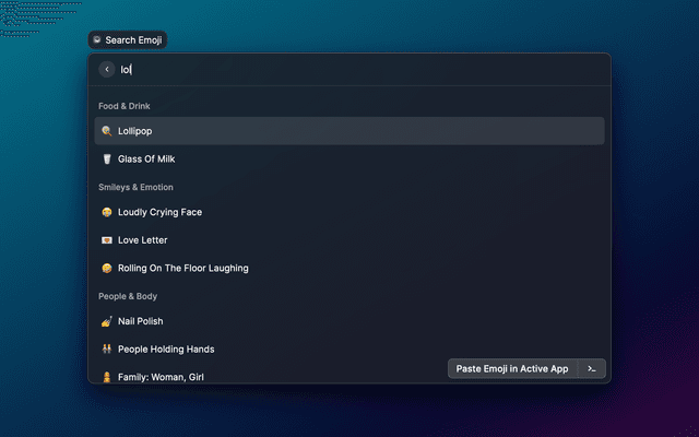 Finds emojis and inserts or copies them.
