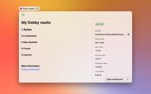 Show your current Defichain vaults, setup at https://defichain-dobby.com/