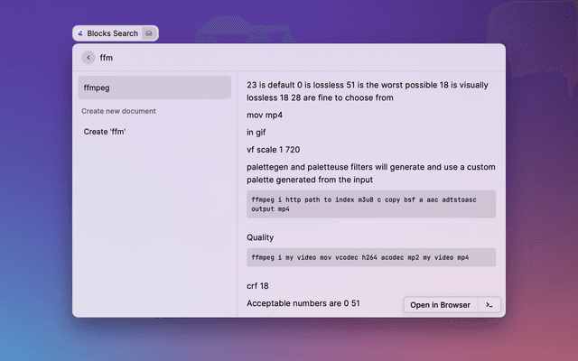 Allows you to search for the Craft documents. the search works through all spaces that Craft has locally available.