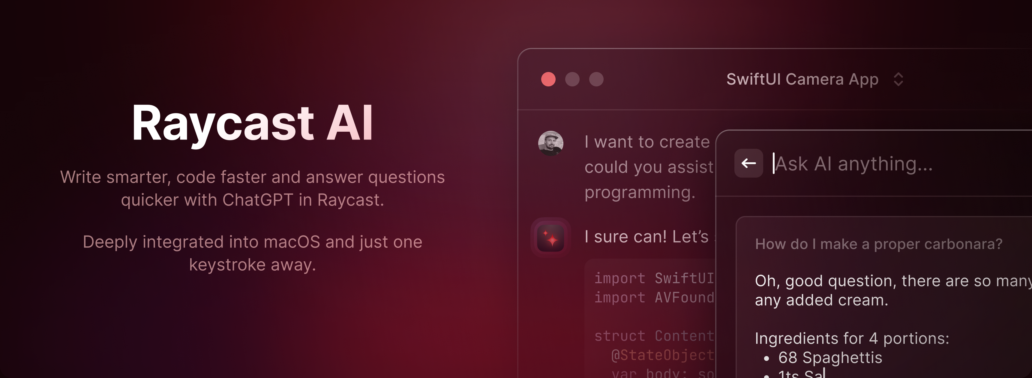 We've stabilized the APIs for AI during the Raycast AI beta, so extensions that rely on them can now be distributed through our Store. This means all Raycast users can benefit from these extensions. We're always amazed by what you create and can't wait to see how you'll integrate AI into your extensions.