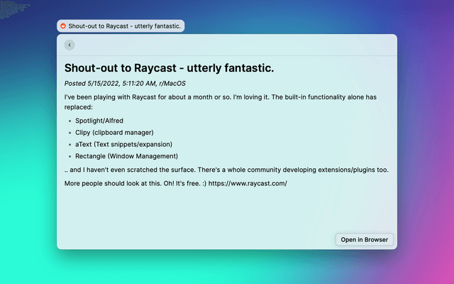 Raycast extension to search reddit.