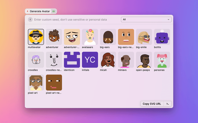 Note (DiceBear Avatars):