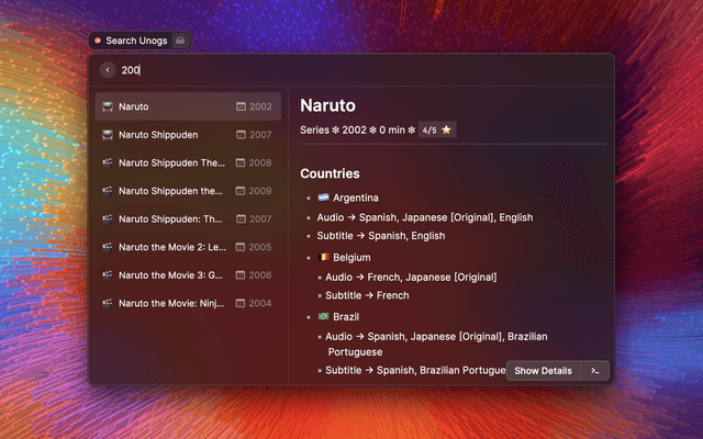 Search for netflix titles on Unogs. View the title's supported regions, audio and subtititle details.